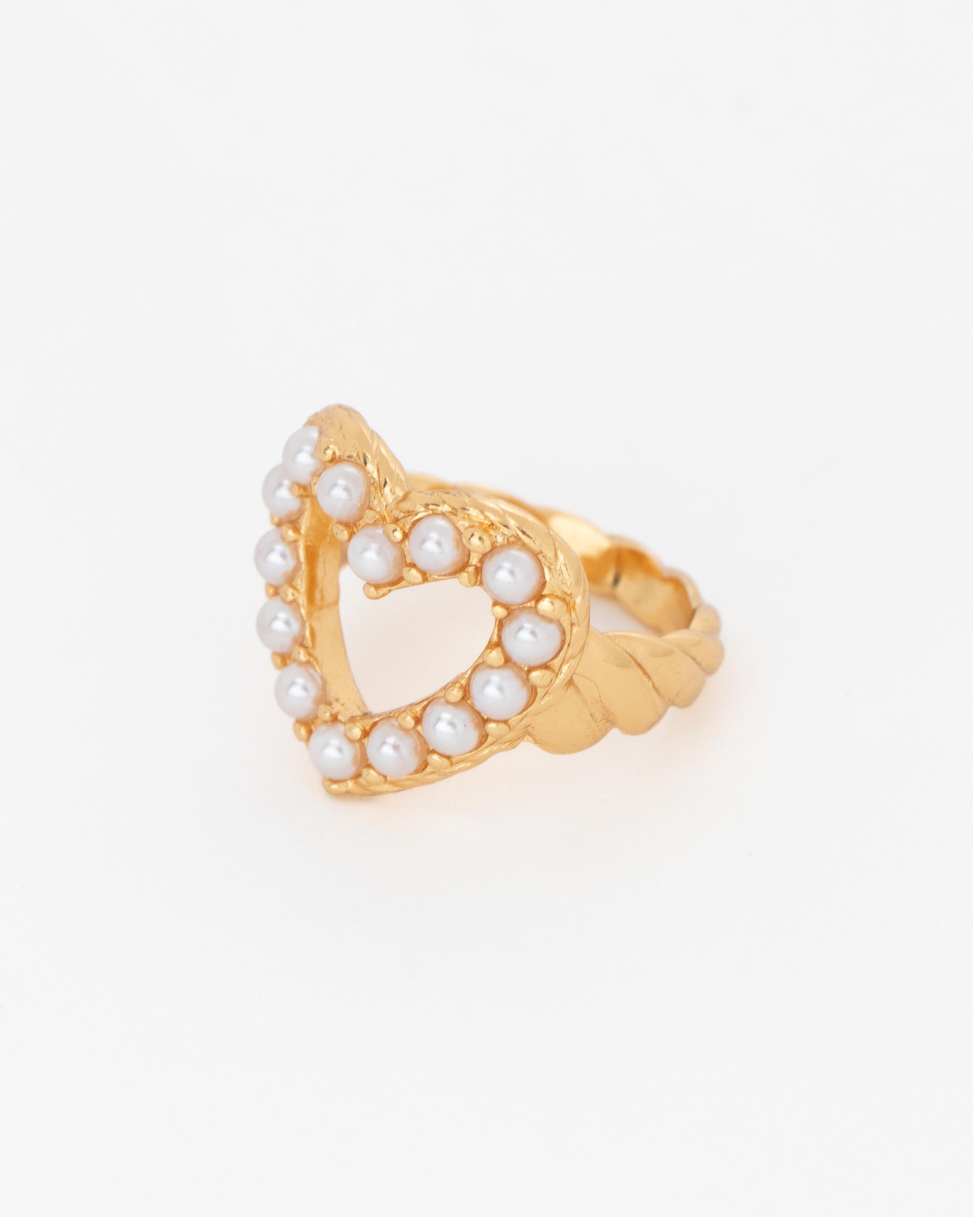 Anillo de corazón con perlas.